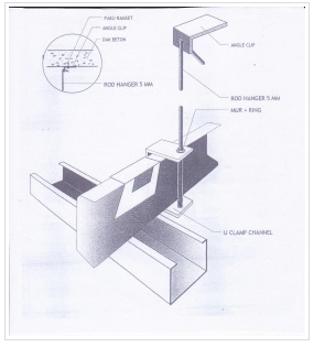- Sedangkan U clamp dipasang pada ujung bawah rod hanger (kawat penggantung).