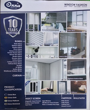 Vitrom Blids ONNA merupakan produk paling tipis dengan perpaduan kain sheer dan dim-out.Memiliki nuansa romantis pada saat posisi kain dim-out mengurangi sinar masuk memalui kain sheer dan akan terlihat lebih modern pada saat kain dim-out ditarik ke atas sebagian lapisan pelindung tambahan dari sinar matahari.